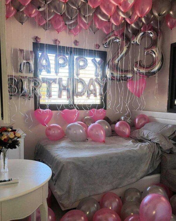 - Шарики на пол 35 см — 20 шт ( серебро, розовые)