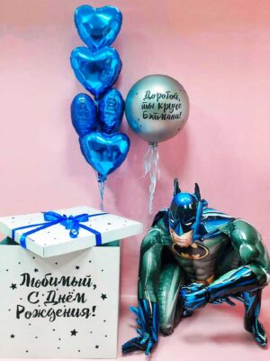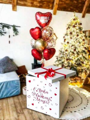 - Большая коробка 70х70х70 см с нанесенными поздравительными надписями