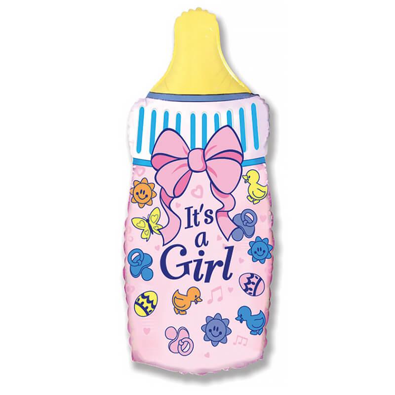 Фигура из фольги Бутылочка для девочки, наполненная гелием.