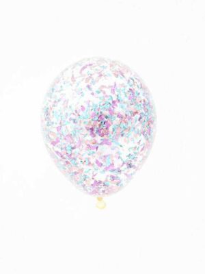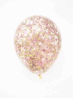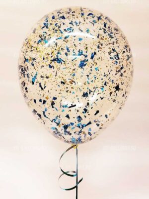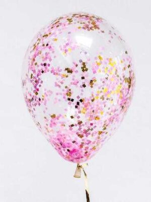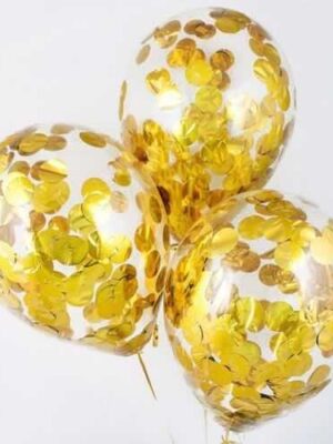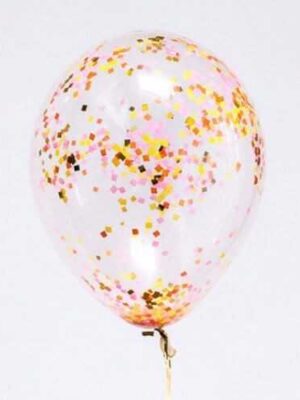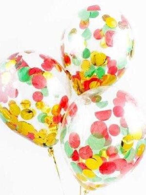 Прозрачный шар, наполненный конфетти в виде крупных красных кругов.